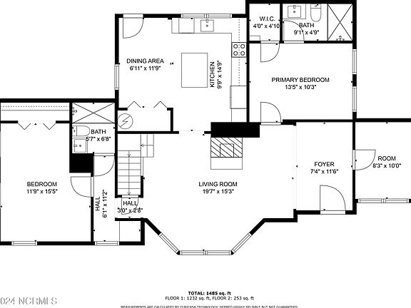 - Total interior livable area: 1,485 sqft
