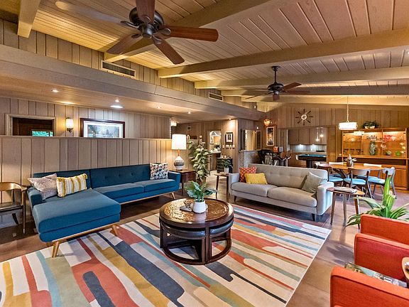 Step into timeless mid-century elegance with this 1954 Taylor Wheeler-designed residence, located in the Fresno High Historic District. Offering 3,155 sq. ft. of living space on an expansive double lot, this 4-bedroom, 4-bath masterpiece perfectly blends architectural distinction with modern comfort. Each bedroom boasts its own en-suite bath, while the rare finished basement provides endless versatilityideal as a media retreat, playroom, or creative studio. Inside, clear white fir tongue-and-groove millwork showcases the home's craftsmanship, complemented by abundant built-ins and exceptional storage seldom found in homes of this era. A car enthusiast's dream, the tandem 4-car garage boasts three front entries, a rear garage door, breezeway access to the backyard, and two dedicated workshop/storage areas. Outdoors, the entertainer's backyard features a sparkling pool with fountains, lush landscaping, and a built-in barbecue with barperfect for gatherings large or small. Sustainability meets savings with 55 solar panels, significantly reducing energy costs.. Beyond energy efficiency, this home offers peace of mind with a recently completed pest clearance. Paired with its generous double parcel, architectural pedigree, and exceptional blend of authenticity and comfort, this residence is a rare opportunity to own a true mid-century gem in one of Fresno's most distinguished neighborhoods.