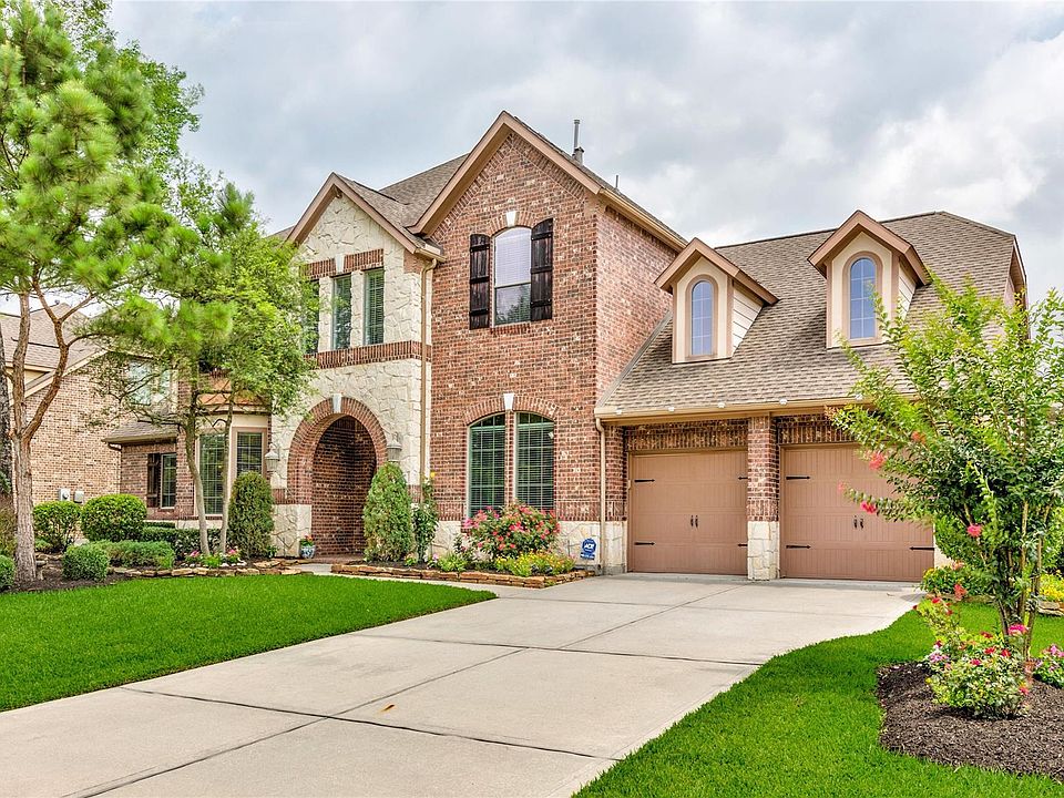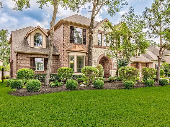 Experience the joy of living in beautiful Woodlands Creekside Park. This breathtaking brick and stone two story home overlooks the gorgeous Tupelo Green Park with it's sparkling lake, playground, and sports courts. This four bedroom, study, 3.5 bath home has a three car garage, towering ceilings, gas log fireplace with granite surround, and hardwood floors. The kitchen features a large granite island, gas cooktop, stainless steel appliances, and large pantry. The primary suite has two walk-in closets, a sunken jetted tub, double vanities and oversized walk-in shower. Upstairs you will find a 21'x15' game room and secluded media room w/ built-in speakers, 5.1 surround sound system, and 82" TV for your enjoyment. Recent updates include new carpet in primary bedroom, new water heater, new windows and shower floor in primary bath. Choice Home Warranty for buyer till Sept. 2022. Pride of ownership shows in the manicured landscaping. World class restaurants and shopping are minutes away.
