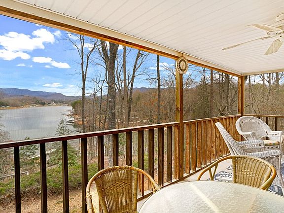 PRIVATE DEEP WATER LAKE HOME ON 1+ ACRES IN THE MOUNTAINS OF NORTH CAROLINA!! Privately located on the shores of Lake Chatuge, this classic brick home offers year round BIG lake and mountain views, 4 bedrooms, 3 bathrooms, kitchen, living room with fireplace and custom built-in bookshelves, game room with fireplace, front porch, lower and upper level screened-in porches to relax on & enjoy the views, open air patio, storage building, beautiful stone steps to spacious lakeside stone patio with large fire pit area, lakeside building with refrigerator & restroom & storage for your lake gear, outdoor shower and a 1 car garage. THE LAKE LIFE WITH BIG VIEWS IN THE NORTH CAROLINA MOUNTAINS!!