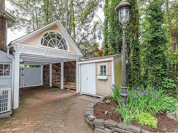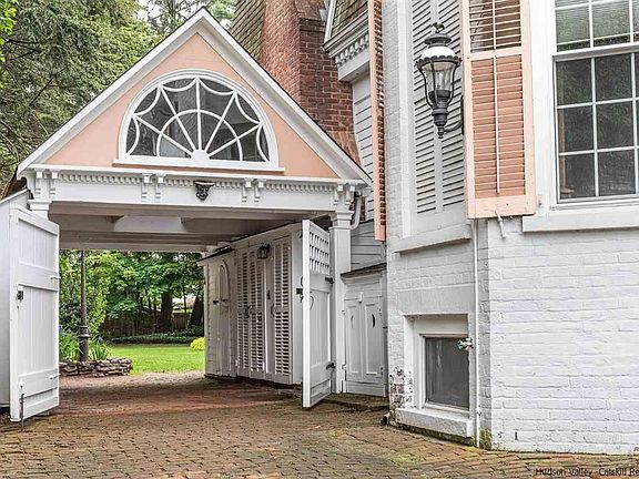Uptown Kingston at its finest: This handsome brick side-hall began life in 1850 but has been graciously expanded over the decades into one of the most iconic houses on the stunning "doctor's row" section of Fair Street. Beyond the sweeping front stoop and brick driveway, the property known as "Sunshine and Shadows" is entered through a gated porte cochere, adorned with windows rescued from Kingston's famed former post office, that opens to a completely private and fenced-in backyard oasis of mature trees and landscaping, patios and a large 2-story barn building. The house itself is equal to the lush setting, with remarkable features to be found on all four levels. On the high-ceilinged ground floor, a terrazzo-floored entry hall steps down to a double-length parlor with twin Italianate fireplaces and a stunning plaster bracket beam. That space is flanked by a bay-windowed study featuring paneling and cabinetry salvaged from both the "Mary Powell," a legendary Hudson River steam ship, and a Vanderbilt family mansion in Manhattan. The formal dining room, also bay-windowed, includes custom wainscoting, intricate multi-layered crown mouldings and another fireplace, one of six total in the house. Those rooms flow to a 20th-century addition featuring a large modern kitchen, half bath, back staircase and a handsome family room finished with reclaimed ceiling beams and pine paneling, all opening to the backyard. Upstairs are 5-6 bedrooms and two full bathrooms, all easily reconfigured into luxurious primary and secondary suites, if preferred. The attic level features something truly unique for star gazers of any age: its own observatory, clad in a salvaged brass marine facade. The finished basement level, entered through a discreet street-facing entrance of its own, is a former doctor's office featuring 1,600 additional square feet of sunny finished space, including an easily expanded half bath, multiple rooms, kitchen and a gracious common area with fireplace and Colonial Revival built-ins. It's the perfect accessory-dwelling unit or work space, and has also been permitted for use as a professional office. This is a rare blend of exceptional historic character, privacy and financial opportunity, all within a quick walk to the stores, galleries and other attractions that have made Uptown Kingston the hottest neighborhood in the Hudson Valley.