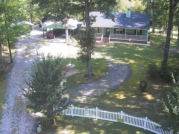 Beautiful, well maintained home nestled in the trees on 1.1 acres and at the end of the street in a quiet cul-de-sac. This home offers so many upgrades and features including remodeled kitchen with all stainless steel appliances, water softener, water filtering system, floored attic with exhaust fan, bay window with 2-way mirror film, under counter lighting in kitchen, Heatilator in wood burning fire place, most ceilings are smooth, low voltage lighting in front of house, large country front porch with porch swing, lighted side steps to front porch, wiring to front yard for future lighting, detached insulated workshop with AC unit, detached Amish Shed, 2- Car carport with large storage area in the rear, whole house Generator, Owner's bath and guest bath remodeled, new storm windows in 2015, a second 2-car carport with metal roof, new HVAC in 2019, new roof in 2021, Septic tank pumped in 2023, and so much more. You'll love swinging on the front porch swing or lounging on the spacious 2-tier back deck (12x12 and 12x17) enjoying a beautiful private yard and the sounds of nature.