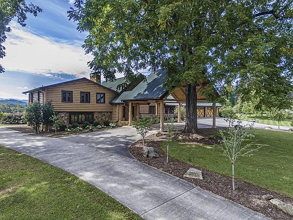 This home features a beautiful setting with magnificent views of the mountains. Lovely Timberframe log siding home with three car garage, and a timberframe porte cochere. The kitchen is open and spacious with granite counters, custom cabinetry and heated floors. The living area features a stone fireplace, vaulted ceilings and large doors opening to the patio. From the patio, enjoy the views from the hot tub or the salt water pool with beautiful night lights. The master ensuite includes multiple closets, a gorgeous master bath and a lighted trey ceiling. Large patio doors lead to the balcony overlooking the valley and the mountain view. The Pool House can be used for additional living quarters or family events and also features a full bath, full kitchen with granite counters and hardwood floors. Enjoy fiber optics for fast internet. This beautiful mountain home is perfect for gathering the family for weekends and holidays. Located conveniently in the mountains of Western NC.
