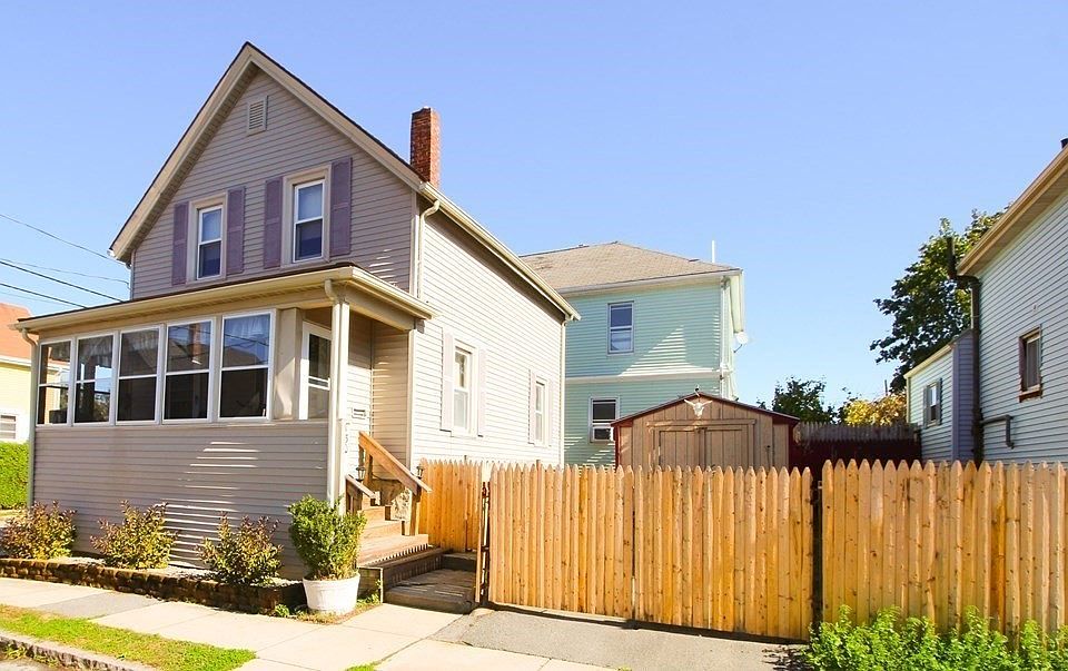 Welcome to the Whaling City. This Two Bedroom Family home is a great place for the first time homebuyer. Nothing to do but move in, add your touches and make this your home. Home has newer flooring, fresh paint and offers an updated kitchen with plenty of cabinetry for the Chef's pots and pans. The living room is large to watch the Sunday football games. Second floor offers the primary bedroom which is quite spacious with large closets and second bedroom is roomy with its own walk in closet. Newly Fenced in yard features large storage shed equipped with electricity and second storage shed offers hook up for the future hot tub. Relax on your enclosed porch sipping coffee, tea or the beverage of your choice. Basement has a partially finished room for a desk or storage. Home offers Vinyl siding, and roof, FHA borrowers welcome. Only a half mile from Buttonwood Park for the walking/running enthusiast. Sellers have found a new home and the packing is under way.Home Sweet Home