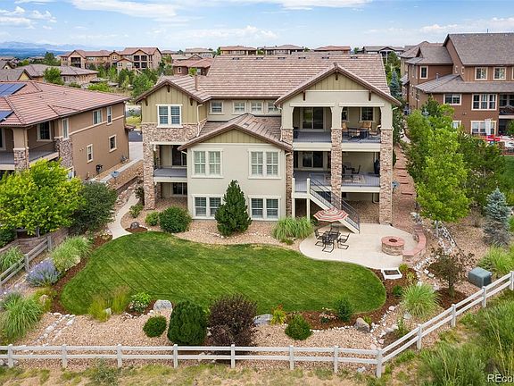 This exquisite home is located in one of the most desirable neighborhoods in Highlands Ranch, known as The BackCountry! There are beautiful plantation shutters throughout the main level & upper level! Hardwood floors grace the main level which is comprised of a fabulous kitchen, formal dining room, conversation room, family room with a delightful stone fireplace, breakfast room, a study/library, a guest room with a 3/4 bath & 2 powder baths. The upper level is host to the gorgeous master suite with a lovely sitting area with a gas fireplace. There are 3 additional bedrooms (2 with ensuite full baths), another full bath and a charming loft with an adjacent covered deck, & the spacious laundry room! The finished garden level basement has a stunning wet bar, gaming area, family room, exercise room, beautiful beams in the ceiling, a hobby room & a 3/4 bath! This home features hand troweled textured walls, 3 covered decks, acoustic insulation between all interior walls and floors & extensive built-ins throughout! BackCountry residents are also members of the Highlands Ranch Community Association (HRCA) and are invited to enjoy the 26 miles of trails. The extensive trail system leads to the magnificent 8,200 acre Wilderness Area. The South Rim is comprised of 467 beautiful acres as well! Numerous trails connect the homes to the community parks & residents have access to the community's exclusive Sundial House with use of the outdoor pool, Pikes Pub and lounge areas. There is also a fitness center & spa treatment rooms. The Sundial House also hosts concerts at the outdoor amphitheater! One step inside this amazing 5 bedroom,8 bath masterpiece and your search just might be over!