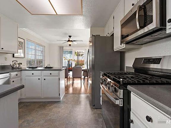 Beautifully well loved home in Glen Cove located in a Cul-de-sac | Full bedroom & full bathroom downstairs! Brand new interior Paint | Brand new carpet | Brand new stove & refrigerator | Crown Molding in most rooms! Dishwasher replaced in 2022 | Fantastic natural light throughout home | Very private backyard | Central heat & air installed in 2019 | Water Heater installed in 2021 | All vinyl dual pane windows throughout | Ring camera installed in 2024 | The far backyard fence replaced 2022 | Right side fence partially replaced 2023 | Back deck repaired and painted 2023 | Hall bathroom toilet replaced 2024 | New washing machine 2022 & dryer 2016 | All bedrooms have ceiling fans | Security mailbox installed 2021 | Backyard is private with plenty of room to create a garden or whatever your heart desires | Views of the hills out the back! | Close proximity to Tennis & Pickle-ball courts, park/playground & to the beautiful waterfront.