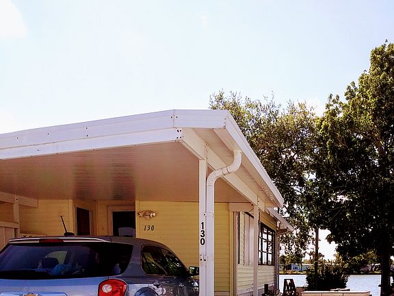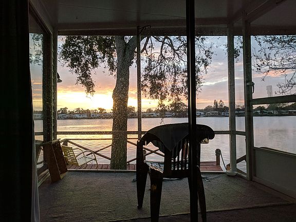 Pet friendly 55 and over neighborhood with heated pool, lots of activities and friendly neighbors. The large sun-room almost doubles the size of this small one bedroom mobile, making it feel as if you live in a much larger home. Convenient private laundry facilities located in the shed under your carport. Watch birds from your dock, swim in the pool, enjoy retirement in Florida.