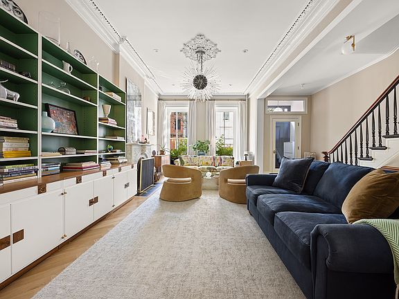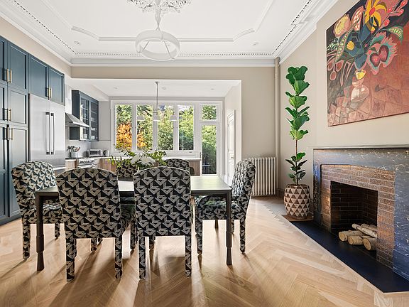 130 Fort Greene Place a stunning 19th century two family home that epitomizes Brooklyn townhouse elegance with exquisite renovations and thoughtful modernized conveniences. Enter this designer home into the parlor level with soaring ceilings, hardwood herringbone floors, oversized windows bringing in glorious light, and stunning original and meticulously restored details. Pocket doors lead to a spacious dining room with a decorative fireplace and generous storage. The open kitchen overlooking the garden features marble countertops, top of the line appliances and stylish fittings. A powder room is tucked away for convenience. Upstairs 5 generously sized bedrooms and three windowed bathrooms, an entertainment den and separate laundry room offer space to spread out and easily work from home. Outdoor enthusiasts will delight in the private terraces to stargaze or enjoy the serene outdoor space, perfect for entertaining or relaxing. These upper three floors of a townhouse seamlessly blends historic charm with modern luxury, providing an unparalleled Brooklyn living experience. Located in one of the most sought-after and coveted neighborhoods in all of Brooklyn, Fort Greene known for its ultimate beauty, is a cultural hub and home to BAM, BRIC and Mark Morris as well as Ft. Greene Park and Whole Foods Market, Atlantic Terminal with 9 subway lines and one of the easiest commutes to Manhattan along with some of the best dining and retail in the entire borough.
