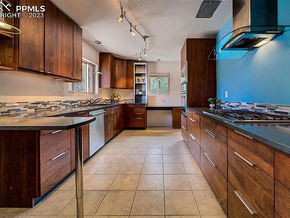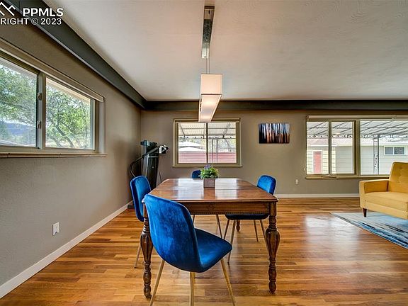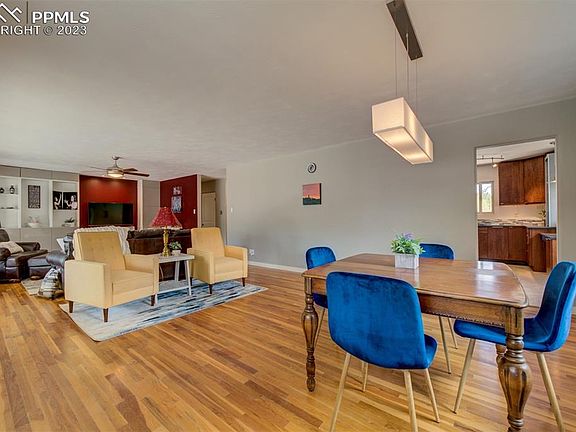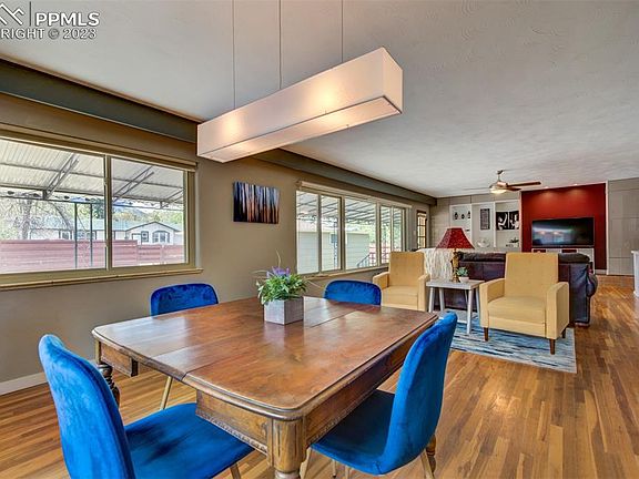 Great brick ranch style home in coveted School District 12 in move-in condition! Walk to restaurants, coffee shops, library, etc! Clean, ready, and priced for a quick sale! Four large bedrooms! The main floor bathroom is gorgeous with a fantastic shower and a heated floor!! Viking gas stove top in the kitchen! Kitchen also has a heated floor!! Pantry in the kitchen, too! Living room walks out to the large covered patio with mountain views! Newer vinyl windows on the main floor! This home has large rooms! There's a fireplace in the basement family room and the TV and TV mount in the family room will stay with the house! There's a large laundry room in the basement with a sink, cabinets, washer and dryer that are included, and a refrigerator and a microwave oven, too! This is such a solid home in such a great location in a great school district! Home is in excellent condition! Nice sunroom on the front of the home! Radon system already installed in this home! The two-car garage has a large attached workshop!