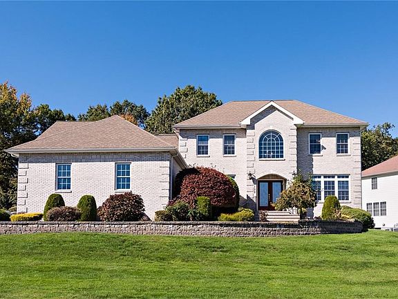 Welcome to this sophisticated brick front colonial in the heart of Western Cranston. A gracious entry foyer greets you with high ceilings and natural light and leads into the main level living areas where you will find a spacious living room with a fireplace and a dream kitchen fit for an entertainer. Hardwood floors continue to the upper-level rooms where you will find an en suite master bedroom with a private balcony, spa-style bathroom, and a large walk-in closet. Three additional bedrooms and a large bonus room share an additional full bathroom. On the lower level, a partially finished basement complete with wet bar and entertaining peninsula lends itself to multiple uses. An oversized three-car garage completes this home. Well-appointed and centrally-located, 130 Fox Ridge Drive has it all.