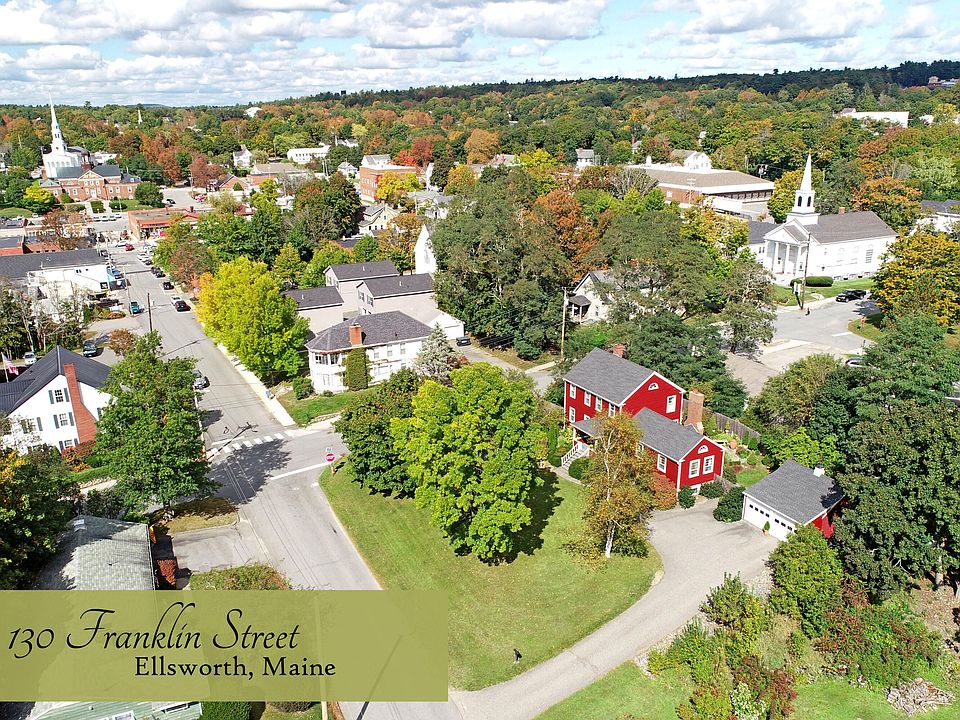 Quite literally rising from the ashes of Ellsworth's 1933 great fire, this period home enjoys an elevated perch in the heart of a blooming downtown. In its 90 year history, this extended colonial has never looked better. All refreshed by the current owner are roof shingles, exterior paint, heat system, gutters, whole kitchen, all appliances, fencing and a thoughtful garden makeover. During improvements, care has been taken to preserve the home's antique appeal...original oak & pumpkin pine floors, multiple built-in furnishing elements, hand hewn ceiling beams, graceful staircase and 3 fireplaces all trace back nearly a century. The intimate dining room retains its original built-in china cabinet & charming pumpkin pine floor and offers both a wood fireplace & potbelly style pellet stove. The renovated kitchen presents newer flooring, granite counters, lighting, appliances & sliding deck door, all working in tune with the original side bar coffee center. Stepping through glass French doors into the living room, rich wood tones warm this relaxing space, ranging from the wide pine floors and decorative wall paneling to the style matching windows & hand hewn ceiling beams. Actual warmth flows from the living room fireplace's gas insert, lending ambiance in an instance and making this room a favored place to unwind. A laundry room doubles as a convenient mudroom entry. A 1st floor half bath completes the ground level. Upstairs provides a full bath & 3 bedrooms, including a primary bedroom with 3 closets, window seat & half bath. Oak floors in the bedrooms gleam in almost perfect condition. The 1/3 acre lot is flush with mature plantings & outdoor living areas. An open front lawn contrasts with the enchanting enclosed backyard, truly a private garden oasis within a location as urban as Downeast Maine gets. Two vehicle garage, paved driveway, town utilities, Spectrum internet & a ''hop, skip, jump'' proximity to all downtown life. Fully inspected with reports available.