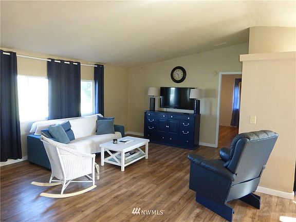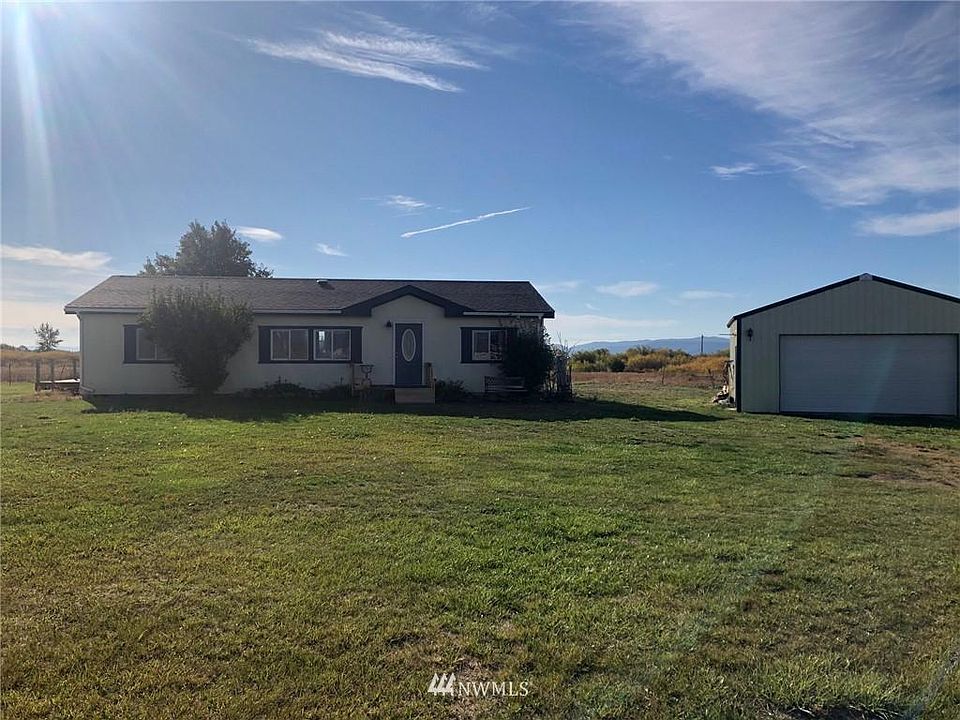Country living at an affordable price! 3 bedroom, 2 bath home with vaulted ceilings, laminate flooring and bright interior all on 5 acres. Detached garage with shop area built within that could be removed for 2nd car use. Large deck, KRD and great views.