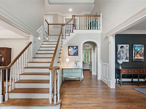 OFFER DEADLINE-6 PM, Sunday, September 7th! Gorgeous brick traditional home in Greenbrier Farm with stunning updates and serene waterfront views on a cul-de-sac lot. This 5BR/4.5BA home features exquisite millwork, wainscoting, and custom built-ins throughout. The expansive living room showcases floor-to-ceiling windows overlooking the water, coffered ceiling, and a stylish bar for entertaining. The chef’s kitchen offers a large island, Sub-Zero fridge, Wolf double ovens, gas cooktop, and wine fridge. Main level also includes a warm den, elegant dining room, office, and screened-in porch for outdoor living. Upstairs, the primary suite is a retreat with sitting area, fireplace, and spa-like bath, plus 3 oversized bedrooms, 2 full baths, and a bonus room. Finished basement features a bedroom, bath, recreation space, flexible room, and garage with extra bay, storage, and workroom. Waterfront living in Greenbrier Farm with pool, clubhouse, trails, tennis, playground, and community events!