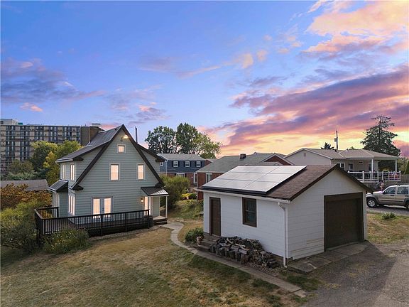 Old world charm meets modern day convenience in this 3 bedroom home built by Hulley. Step inside to a cozy living room featuring a gas fireplace w/ tile hearth and wood mantel. Gorgeous original hardwood floors! Dining room with tons of natural light overlooks the wrap around back patio. Updated kitchen with granite countertops, gas stove and large pantry. 3 spacious bedrooms with updated beautiful bathroom complete the upper level. Impeccably maintained and move in ready. Enjoy a huge corner lot on a quiet street! 1 detached garage and plenty of off street parking. Updated electric and HVAC. New metal roof 2025! Tesla solar panels keep energy costs low. Centrally located in the heart of Ross Township w/easy access to shopping, dining, Downtown Pgh.