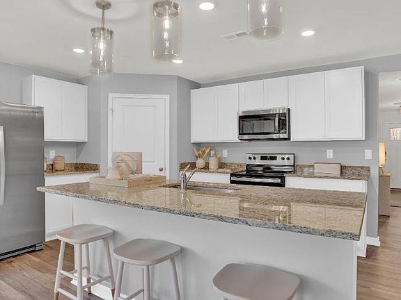The Neuville by D.R Horton is a stunning new construction, ranch home plan featuring 1,698 square feet of living space, 4 bedrooms, 2 bathrooms and a 2-car garage. The Neuville boasts first floor living with every amenity in easy reach! The foyer welcomes you in with two large bedrooms and full bathroom on one side. As you continue on down the foyer, you’ll find another large room and laundry room. The kitchen has ample counterspace and a large, modern island overlooking the dining area. Off the great room sits the owner’s suite, highlighting a spacious bathroom and huge walk-in closet. Home and community information, including pricing, plans, included features, terms, availability and amenities, are subject to change and prior sale at any time without notice or obligation. Pictures, artist renderings, photographs, colors, features, and sizes are for illustration purposes only and will vary from the homes as built within communities.