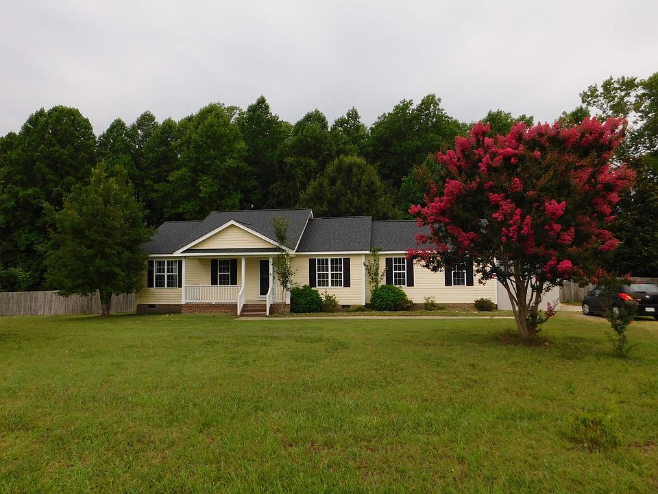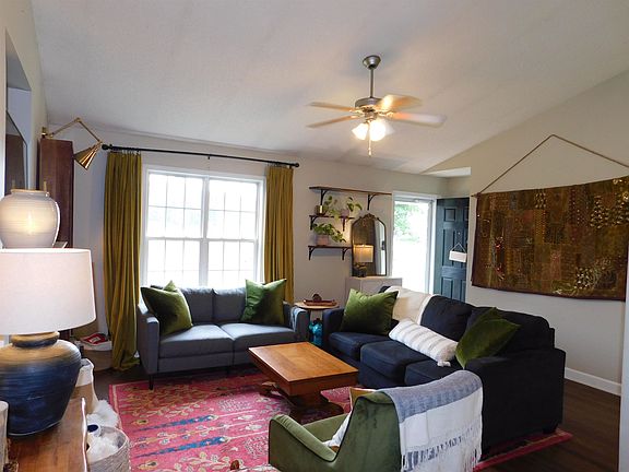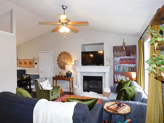 Charming Ranch home! Home is on almost an acre lot in Cul-de-sac. Cathedral ceiling in living room, living room with fireplace open to the dining area. No Carpet! Fenced in back yard, above ground pool. Great covered porch. Shed and playset do not convey.