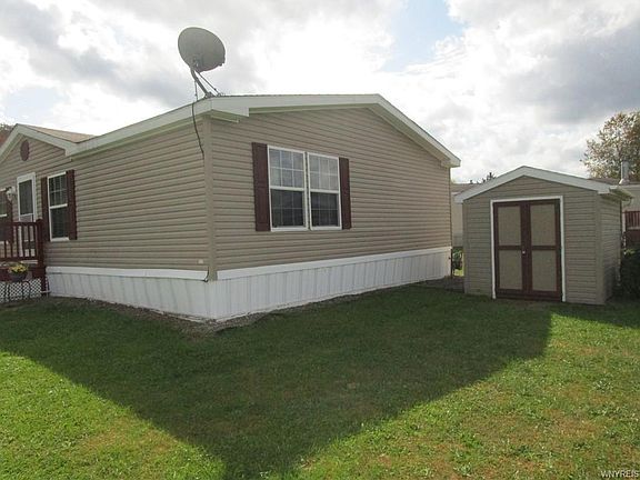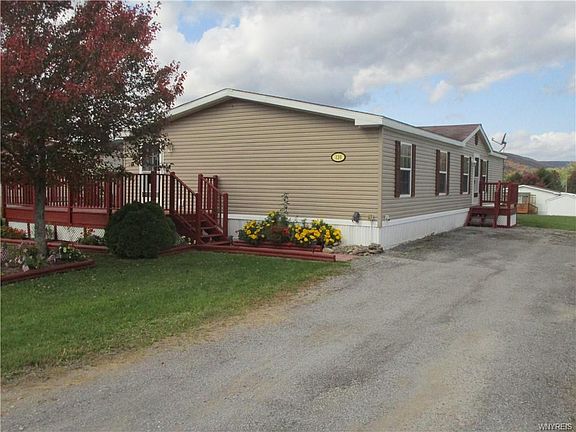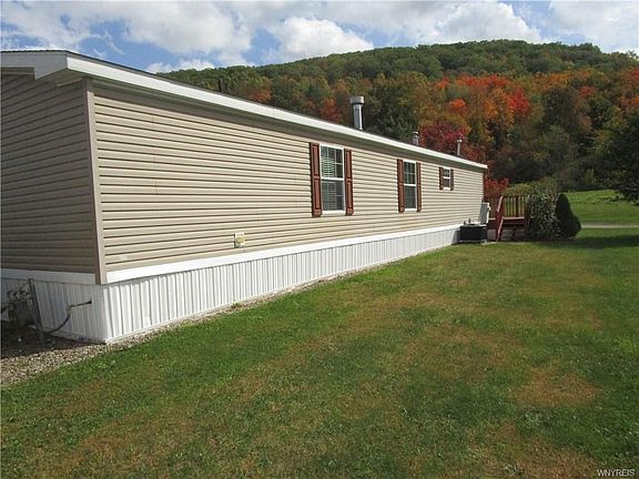 Enjoy the breathtaking views of the ever changing sites of the Great Valley/Ellicottville hills surrounding this wonderful spacious and open feeling 3 bedroom and 2 full bath home. Lovingly care for by the original owner your sure to enjoy the large vaulted ceiling great/living room with real wood beams and gas fireplace. Floor plugs were added for ease of room configuration and no exposed electric cords! The spacious oak kitchen with upgraded cabinetry and double stainless sink includes all appliances. Neutral solid vinyl flooring in kitchen and dining area. Bedrooms are split up for privacy. Common bath with skylite. The master bedroom is 17'x13 with 2 separate closets. Entry to the master bath is through double doors from the bedroom. The master bath features and tub/shower, extra long vanity and separate stand up shower. Storage is very ample. This home has a separate laundry/utility room with the washer & dryer included. Enjoy the glorious views while sitting on your 28' deck. Electrical outlets have been added around the exterior of the home. A storage shed is included. The lot rent includes water, trash removal and road maintenance/snow removal. A MUST SEE 2020-12-03