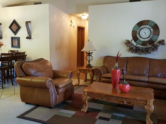 Just reduced for fast sale! One of the least expensive homes in the area. Immaculate 3 bdrm. center hall floor plan with great curb appeal. Master suite with dual sinks plus 2 bdrms., living room, den area or formal dining room with stove, dining area off kitchen, spacious laundry room. Open kitchen with breakfast bar and window looks to large, inviting backyard with covered patio area. Great for entertaining. 2 car garage plus deep front driveway. Well-kept and lovingly cared for home in great residential area in the Village of Oak Creek near golf course, hiking trails, shops and Red Rock Crossing. VOCA membership and golf privileges. Photos do not do it justice! Information deemed reliable but not guaranteed.