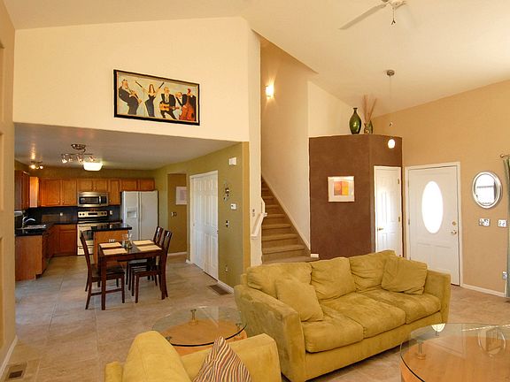 This fantastic home located on a cul-de-sac is walking distance to the elementary school, Founders and Mitchell Gulch Parks. It is nearby the rec center and community swimming pool. Peak-a-boo mountain views! The exterior paint was completed in 2007. Youll enjoy relaxing or entertaining friends on the freshly stained over-sized deck with built-in audio speakers. Interior features include a spacious gracefully flowing floor plan, extensive tile floors on the main level new carpet, upgraded lighting, and vaulted ceilings. Tasteful decorating touches are apparent throughout. The living room and family room combination offers plenty of space for gatherings. A gas fireplace creates a warm and cozy atmosphere. A TV niche and built-in shelving are perfect areas to display your valuables. A generous sized kitchen includes oak cabinets, tile granite countertops, and stainless steel appliances including the smooth top stove refrigerator and microwave. Tile floors and backsplash, a pantry, big island and a casual dining area complete the kitchen. Upgraded track lighting enhances the light and look! Main level laundry is made easy. Upstairs is host to the master bedroom with vaulted ceilings, a ceiling fan, and a designer chair rail. Tile floors adorn the master bathroom. A walk-in closet is nearby. Kids/guest rooms are just down the hall. The finished basement has a lot of additional living room! The family/recreation area features upgraded track lighting and new carpet. The basement bathroom is all new including the fixtures and tile floor. There is high speed internet Access and a second phone line in the basement office. Move right in with no work necessary. Another "TESTA-mon