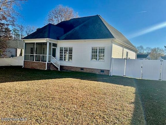 Striking home with impressive moldings, triple tray ceilings, cathedral ceiling, and fireplace make for dramatic and quality construction. The open concept includes kitchen with stainless steel appliances, granite countertops, sweet breakfast area, living room, and formal dining with lovely hardwood floors. The screened porch overlooks a large backyard with a privacy fence . The primary bedroom is privately appointed and has triple tray ceiling, and an ensuite bathroom offering a soaker tub, separate tiled shower and double vanity and a WIC. The two guest bedrooms are located on the opposite side of the home with easy access to a full hall bathroom and , and a very large bonus room that is on a seperate and new mini split system. The walk in attic storage is enormous, allowing for plenty of storage area. Let's not forget the two car garage and access to a community boat ramp. Easy access to Washington and Greenville. HOA is optional and