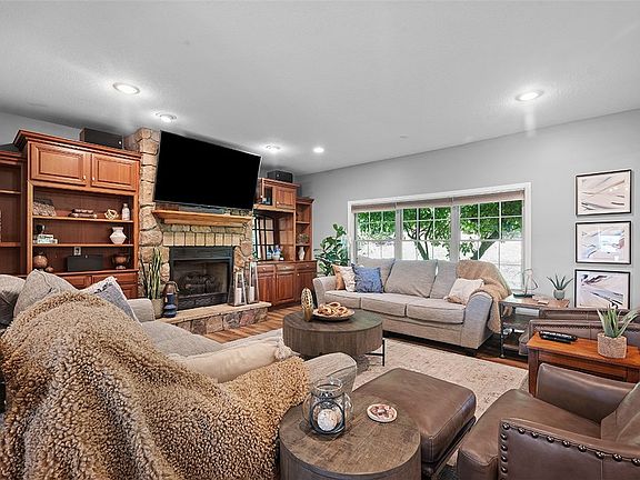 Stone fireplaceSerene patioCustom built-insBeautifully landscaped yardFinished lower levelInviting family roomSoaking jet tub