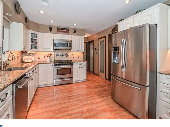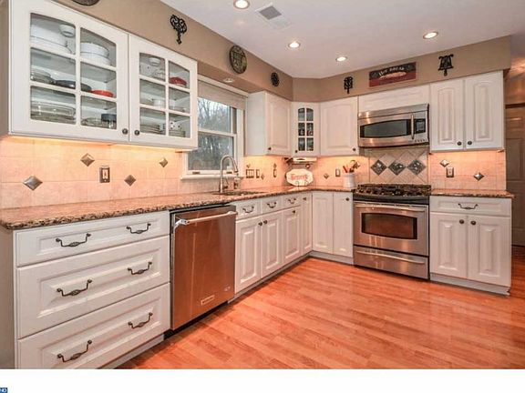 Start your New Year off right! Beautiful classic home and property move-in ready! Large yard(2.55 acres) with wooded and open space on a cul de sac of custom homes close to turnpike and major routes of travel. Front of home features a large porch. Remodeled kitchen with Tuscan cabinetry; some with glass door fronts, granite countertops, tile backsplash with stainless steel inserts, large pantry, stainless steel appliances, breakfast room with sliders leading onto oversized deck. great room open to kitchen. Beautifully remodled custom tile fireplace surrounded by built-in units. Hardwood foyer, Dining room and Living rooms complete the first floor. Fantastic master suite with a walk-in closet and finished room closet with a chandelier!(this room was previously used as home office) Master bath completely redone with tile floors, walk-in shower, granite vanity countertops, linen closet. Three more bedrooms and a redone hall bath complete the upstairs. ceiling fans in all bedrooms. laundry room/mudroom on first floor. Finished basement with built in bar area and large open space. Half of the basement is designated storage space! HVAC unit replaced in past year, newer hot water heater. Check this one out!!