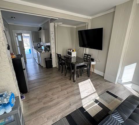 First floor unit. The kitchen and baths have been updated. Off Street parking. Gas heat. Coin-op laundry is available in the basement.