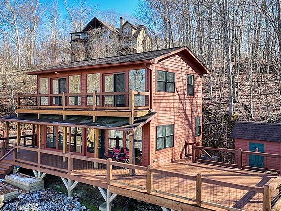Tucked away with great views from both the upper and lower levels, this sweet mountain getaway offers a light and bright main with its wall of windows across the living, kitchen, dining, central fireplace and adjoining guest bath! Upstairs you'll find 2 large bedrooms again with lots of windows for the great daytime views and star filled nights and each with its own bath too! Step outside to the amazing deck space, both covered and uncovered, and soak in the natural surroundings from the recently built 20' x 20' open deck! This seller has taken incredible care of the property and spared no expense on updates and upgrades in 2016! A new roof, water heater, Pella operable windows, all appliances, flooring throughout AND heat pump! Just off the deck you'll love the 2 sheds for yard tools or basic storage, including food in the extra freezer! Gardening your thing? This Master Gardener has created many opportunities between full sun raised beds, rock edged gardens and a stone patio with firepit for shade gardens. No steep climb to the property and convenient to all the area has to offer! Less than 10 minutes to historic downtown Hayesville with its shops and restaurants, music on the square, parade celebrations, Lake Chatuge and wonderful trails for biking or hiking! Or relax on the deck with your next great read! Nice and clean and ready for its new owners!