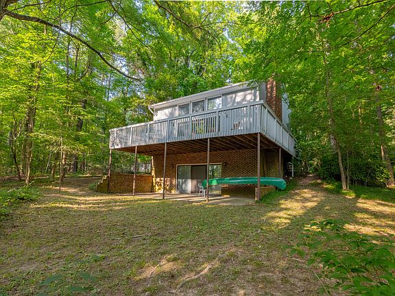 KERR LAKE WATERFRONT & INCREDIBLY CLOSE TO YOUR SANDY BEACH! Much Fun Awaits @ this 2 Story Cottage w/ Walk-out Basement! Large Vaulted Family Room w/ Wood Floors & Fireplace open to Kitchen w/ Appliances. Office Nook or potential 3rd Bedroom & Bath. 2 Upper Bedrooms /Bath. Lower Level Rec Room w/ FP & Wood Insert; & Mechanical Room. Huge Deck overlooking Kerr Lake shoreline! Gem of a property under $300K. No Boat Dock Permit Avail for this property- BUT Much Closer to Water than Most! Come Check it Out!