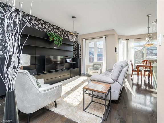 3 bedroom freehold townhome located in the desirable Scott Neighbourhood*Lovely entry with transom windows*Open concept living with 9 ft ceilings & hardwood thru-out main level*Great dining area for family gatherings*Kitchen features a 3 seater breakfast bar, subway tile backsplash & overlooks living room*Walk-out from breakfast area to spacious deck & fully fenced yard*Master with full ensuite*Additional bedrooms are a good size*Convenient 2nd level laundry*Professionally finished basement for additional living space*Parking for 2-no sidewalks *Minutes to Milton's trail system, leash free park, shopping & Milton Hospital*Easy access to major commuter routes.