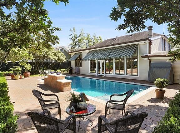 NO SIGN ON PROP! 75x120 lot w/gorgeous beamed ceiling greatroom w/fireplace overlooking a spectacular yard w/ quartz finished pool & water feature & spacious decked patio. Kitchen w/Sub-Zero frig, Viking Cooktop, custom copper hood, dbl ovens & lg breakfast bar/island. Copper top wet bar w/wine cooler completes your party set-up! Rhino-Shield over brick, Irrigation System, subsurface drain, Copper Gutters & more! UNDERGROUND service wiring - NO UNSIGHTLY POLES! Flood zone X. Location is fabulous!