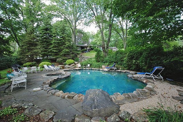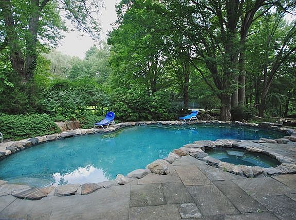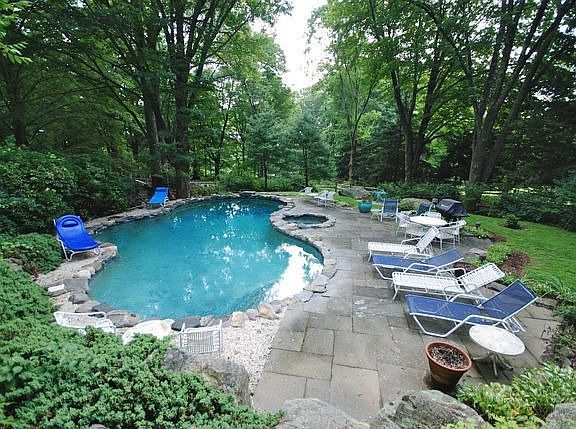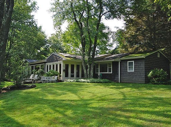 Sophisticated country ranch sited on gorgeous park like property, complete with free-form Shoreline pool and clay tennis court with har-tru dressing. Living room and formal dining room feature walls of glass which offer beautiful views. 3 season porch opens to a lovely stone terrace. Gourmet eat in kitchen features gas range and granite countertops. Family room includes full bath (can opt as 4th bedroom.) Master suite includes a newly designed dressing room. STAR savings of $1003 not included.