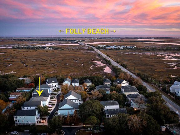 Arguably the nicest FULLY FURNISHED townhome on the market this close to Folly Beach! Immaculate condition and shows like a model with numerous upgrades and finishes completed by the current Owners. The bright and airy open floor plan offers great entertaining space and lots of natural light. The stunning kitchen features custom cabinetry, quartz countertops with a large island w/ shiplap surround, stainless steel appliances incl. a gas range, and new lighting and hardware. The gas fireplace and trim accent wall in the living room open out to a private screened porch with sitting area. An additional bedroom and full bath make up the remainder of downstairs. Newer wood laminate flooring flows throughout both floors, with ceramic tile in the bathrooms. The Master suite opens out to the topscreened porch and master bath features dual vanities, a walk-in closet, soaking tub and standing shower. Just across the breezeway is the 3rd bedroom and full bath, with laundry closet in between. Owners upgraded all lighting fixtures and added ceiling fans throughout, along with a fresh coat of paint inside. Underneath offers ample storage space for your beach chairs/toys, and room to park 3 cars and/or a golf cart. Walk just around the bend to the fire pit area on the marsh. The convenience to Folly Beach can't be beat!