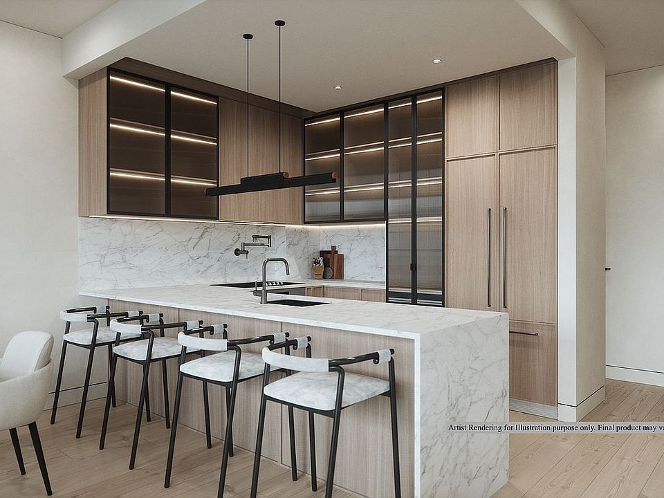The home's airy interiors highlight sleek finishes, great ceiling height, and a seamless flow. The chef's kitchen is a work of art-featuring top-tier appliances, custom millwork, and elegant countertops, all blending form and function for the perfect culinary experience.