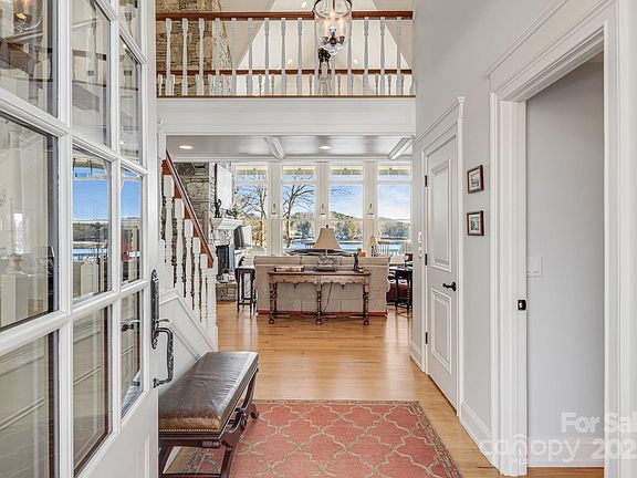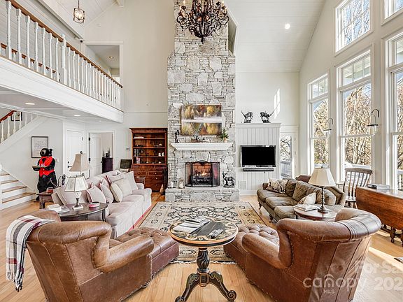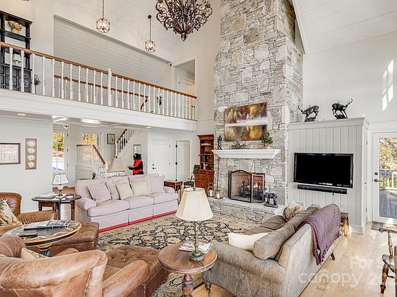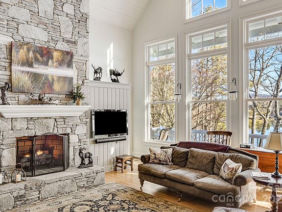 Here's one of the most fabulous panoramic views of Lake Toxaway, a view from almost every room in the house. This stunning home boasts three bedrooms, and four and a half baths with two bonus rooms that might serve as office, and living spaces, or provide flexibility for guests. The spacious main-level living room with its dramatic floor-to-ceiling fireplace features large windows, allowing plenty of natural light and spectacular lake views. The open-concept floorplan allows easy access from the kitchen to the dining area, making it ideal for hosting friends and family. The kitchen has stainless steel appliances, custom cabinetry, and ample counter space. Upstairs each bedroom is complete with an ensuite bath and private balcony. The lower level boasts loads of entertaining space and level access to the backyard with the boathouse and dock steps away. Lush landscaping completes the package! Easy golf cart access to Lake Toxaway Marina, Greystone Inn, and Lake Toxaway Country Club.