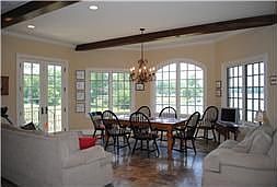 Gorgeous lake lot, level to water. Architectural beauty! Hughes-Edwards quality product! Guest house (needs some finish) coffored and domed ceilings, library, tile flooring, granite, generously-sized rooms, much flex space! All the amenities! Covered dock.