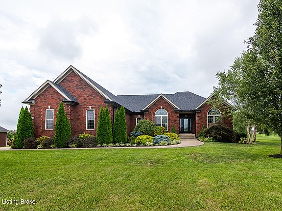Honey, stop the car! Don't miss this 4 bed, 3 bath brick ranch home with a 3 car garage with a walkout basement on a 1.1 acre lot. Must see theater room in basement! Walk into an open floor plan and gorgeous hardwood floors. Living area has vaulted ceilings and an electric fireplace. Spacious eat in kitchen has granite counters, ample cabinets, a breakfast bar and pantry. Separate dining area is perfect for entertaining. Split Floor plan with 2 nice sized bedrooms and a full bathroom in between them, and Primary bedroom on the other side with a private bathroom and large walk in closet. Primary bath has double vanities, a jacuzzi tub and separate shower and toilet. Head downstairs to an entertainers paradise. Large movie room with projector, stadium seating, surround sound and more. Kitchenette and pool table / entertaining area in basement. With a 4th bedroom in basement. 5th non-conforming bedroom as well. Walk outside to a hot tub, fire pit and plenty of land to enjoy! This home wont last long, make your appointment to see this gorgeous home today!!