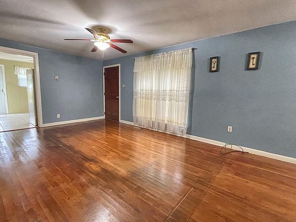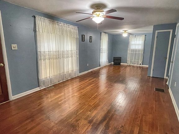 Fantastic buy and PRICED TO SELL on this move-in condition home. All brick 2BR/1BA ranch style home in good condition. Has hardwood floors in all bedrooms, living room and eat-in kitchen. Tile floors in kitchen and bath. Kitchen includes refrigerator, smooth top stove and washing machine. Huge living room with gas log fireplace. House used to have a 3rd bedroom but previous owner wanted a larger living room so they removed a wall to enlarge living area. There are vinyl tilt-in windows. Property includes a 11'x34' singlewide mobile home previously used as a beauty salon. Also has a 8'x12' storage building and 2 carports, one is 2 car and one is 1 car size. House is only one on street so no traffic. House being sold as-is due to property being inherited. Beautiful country views from front yard too.