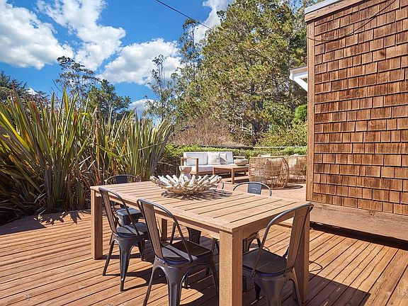 Coastal Retreat on Bolinas' Big Mesa - Main Home + Guest Cabin on 12,000 Sq. Ft. Lot Tucked away on a quiet gravel lane just a half-block from the no longer used portion of Ocean Parkway, this remodeled 1932 cottage offers a rare blend of coastal charm, privacy, and seamless indoor-outdoor living. The main home features 2 bedrooms, a thoughtfully updated kitchen with modern cabinetry, slate tile flooring, stainless steel appliances (including a convection range and dishwasher), and a deep stainless sink. The fully renovated bathroom features a walk-in shower and sleek contemporary vanity. A separate cabin with an upgraded full bath provides flexible living space ideal for guests, a home office, or creative studio. A dedicated laundry room with front-loading washer and dryer completes the home's functional amenities. Set on a fully fenced, sunny lot, the water-wise landscaped grounds invite outdoor living with flagstone walkways, multiple decks, a fire pit, and a hot tub. There is on and off street parking. Located near Agate Beach, Bolinas Beach, and downtown Bolinas, this property offers easy access to surf, scenic trails, and the community's unique artistic spirit. This is a rare opportunity to own a tranquil slice of Bolinason the road less traveled.
