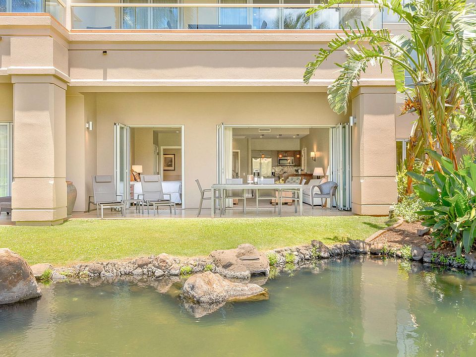 Konea 110 is a unique opportunity to own a spacious one-bedroom ground-floor residence at the coveted Honua Kai resort zonned HOTEL so now worries about being able to rent. It is the first ground-floor one-bedroom unit to become available since March 2022, making it a truly rare find. Ground-floor living offers the ultimate convenience at Honua Kai. Step directly out of your lanai for effortless access to the resort's pools, beaches, BBQ areas, and lush tropical landscaping. Konea 110 sets itself apart with a special feature: a waterway separates the lanai from the walking path, creating an enhanced sense of privacy and tranquility. This unique layout allows you to enjoy the vibrant resort atmosphere while also having a peaceful retreat to relax and unwind. Interior Highlights: Soaring 11-foot ceilings throughout create a sense of openness and grandeur. Expansive bi-fold doors open seamlessly to the lanai, blurring the lines between indoor and outdoor living. Honua Kai Resort Amenities: In addition to your private lanai, five swimming pools, five hot tubs, and a 24-hour fitness center are all available for your enjoyment at Honua Kai.