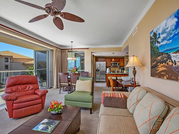 This beautiful oversized corner unit with extra large lanai is perfect for entertaining or just watching the whales swim by. Great ocean views from inside the unit. Enjoy both the sunrise and sunset from this very private corner unit. This unit boasts over 1200 square feet of living space inside and over 500 square feet outside on the large lanai. This unit is in a very busy vacation rental program with KBM Resorts.