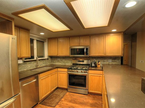 If you are looking to sleep a lot of people at an affordable price, then you must see this fabulous home featuring 5+ bedrooms, 3 full baths and a 3-car garage plus lots of storage in the crawl space. This home offers a spacious open layout floorplan. The main living area has new vinyl plank flooring. A cozy wood burning fireplace will keep you comfortably warm on chilly nights. The kitchen has been updated and features new appliances, beautiful Caesarstone countertops, Quartz farmhouse sink and extra-long breakfast bar. There is room for everyone with 5 bedrooms. The bathrooms have been recently remodeled and feature heated tile floors. The exterior of the home was painted in September 2017. There are two large decks with fabulous views of the mountains. Additional features include dual pane windows and a metal roof. Great location with the shuttle stop just steps away from your driveway.