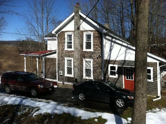 Cozy 2 story home on almost 2 acres of land bordered by stream. This 2 bedroom, one and a half bathroom home has knotty pine laundry-mud room, dining room with chestnut floor, carpeted living room and large sunfilled eat-in kitchen with butternut cabinets.Upstairs has 2 large bedrooms with wide plank floors and extra large closets. There is also a 1/2 bath. Outsidehas private back yard with fenced in garden and small deck. Walk across the covered bridge over the stream to a 20x40 4 car garage with electric and separate driveway. There is also a second outbuilding for a shop and storage. This home is priced to sell!
