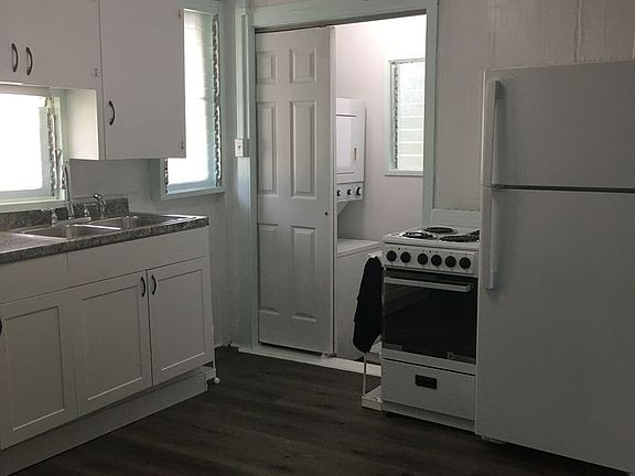 Conveniently located in downtown Hilo near shopping and services. Covered front porch, multiple parking spaces, A/C, AS-IS small stackable washer/dryer in unit, gas water heater. Carpeting and vinyl plank. No pets on property. Do not access the property without being accompanied by the Property Manager. The drive-by is intended to help the applicant determine the property is situated in the desired location with acceptable surroundings/neighborhood. Directions: Head South on Kilauea Ave in downtown Hilo near Ben Franklin, turn RIGHT onto Kukuau St (before Panda Express), house is 3/4 way in on the right side. Numbers on mailbox.