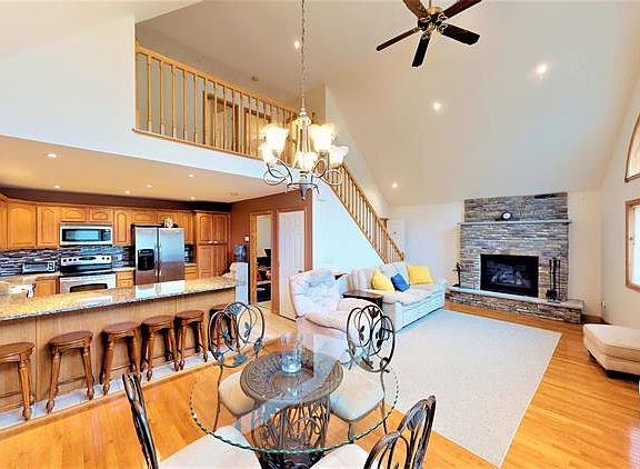CONTEMPORARY CHALET WITH 4 SEASON ROOM ON 1.15 ACRES WITH LOTS OF UPGRADES! This LIKE NEW MOVE IN CONDITION HOME features lots of windows bringing in the natural light, 3 bedrooms, 2.5 baths, master bedroom with en suite master bath and walk in closet, granite kitchen with stainless steel appliances and snack bar open to cathedral dining living room combo with stone propane fireplace and high shine hardwood floors! Just off the kitchen you'll find the 4 season sun room great for use as a family recreation room! Full finished walk out basement has a den room with a wood stove, another extra room, laundry utility rm and the garage. Energy efficient propane heat and central air conditioning are another plus!THIS HOME HAS IT ALL PLUS IT'S LOCATED ACROSS THE STREET FROM THE SCHOOL BUS STOP