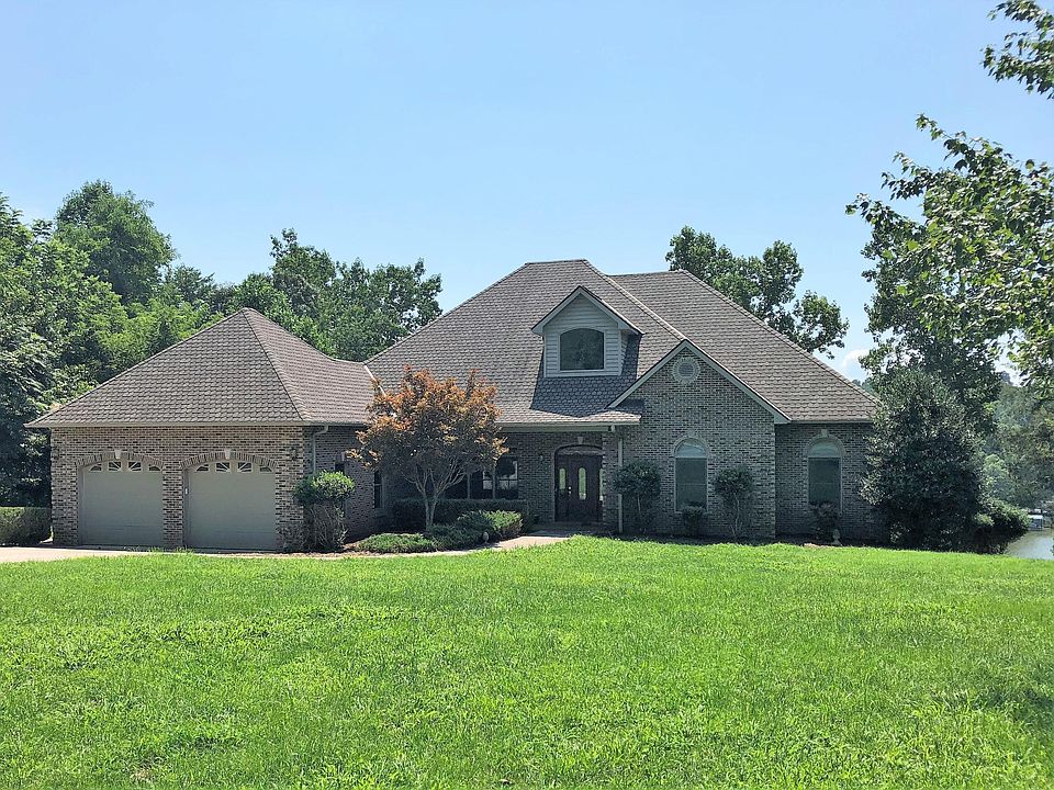 Gorgeous custom built waterfront home! Space for everyone with 5 bedrooms, 5 full baths and almost 6,000 sq ft, on a private one acre lot. One-floor living at its best with master suite and laundry on the entry level. The main level also features a spacious kitchen with island and breakfast area, separate dining room, living room with brick fireplace, office, screened porch, and two additional bedrooms and bath. Upstairs features a second master suite with fireplace, an on the lower level a wet bar with billiards area, large family room with 3rd fireplace, another bedroom and two more baths. Enjoy the cart path to the double slip boat dock with storage room and your own private beach.