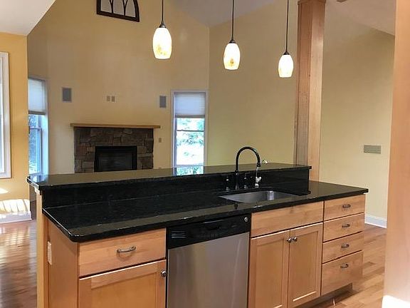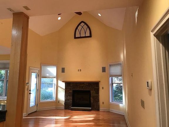 Fabulous, 2009 custom contemporary home in the coveted Guilford Lakes District. This 2+bedroom, 2.5 bath home features high vaulted ceilings and a gas jet fireplace in the large sunny great room. The open concept kitchen features granite-styled countertops, gas range and oven, stainless steel appliances, custom glide cabinets and a walk-in pantry. The large island has a stainless-steel sink and bar seating. There is a sizable separate formal dining room and guest half bathroom off the entrance hallway. The main floor includes a large master bedroom with custom recessed lighting and sliding glass doors onto the rear garden. Master bathroom includes large walk-in shower, stone countertops and walk in closet. An open stairway leads to a second-floor bedroom and full bathroom. Working from home? This spacious house offers multiple spaces that would be ideal to utilize as an office or a guest sleeping alcove. These include the two sunny upstairs lofts overlooking the living room and the separate dining room/media room off the entrance. Glossy hardwood floors throughout the entire home and large windows reflect abundant natural light through both levels of this open-plan two-story home. Expansive wood veranda stretches the length of the home with views into the surrounding woods. There is a private garden which opens to the Timberlands hiking trails. Home has forced air heating and cooling and custom embedded speakers and sound system throughout and hard-wired alarm system. The total square footage is 1915. Washer and dryer are on main floor and included for tenant use. Cement-floored crawl space with ample storage and a separate gardening shed. Tenant requirements: must have credit scores of 675 or higher. Proof of income of at least $9000 month net/take home. Landlord pays for twice a year snow removal and Guilford Lakes Association fees which include use of lakes for kayaking, boating, and swimming. Tenant responsible for grass cutting, all utilities and garbage. Pets negotiable. Five-minute walk to the Guilford Lakes Golf Course and award-winning Guilford Lakes Elementary School and a short drive to Guilford's historic town center, highway access and beaches. Renter responsible for utilities, electricity, gas, propane, garbage pick up and grass cutting. Landlord pays twice a year snow removal. Small pets permitted, no smoking.