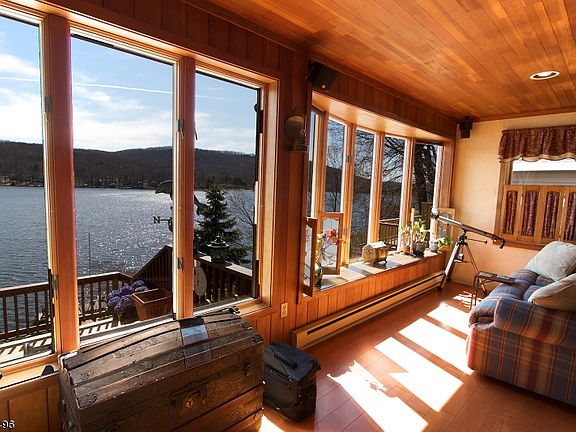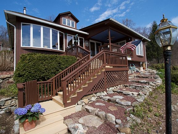 Majestic views of this amazing spring fed glacial lake provide the perfect setting for this lakefront home that features an incredible outdoor stone fireplace on the water! Great year round or getaway. The home features direct water views that are truly captivating throughout all the changing seasons and from sunrise to sunset. Local amenities include Jenny Jump State, Lake Pavilion and a Beach Area that currently has lifeguards during the swimming season. The kitchen on the interior has beautiful granite countertops with ...Pecan finish cabinetry - truly beautiful. This light filled home features 4 skylights and plenty of windows that offer views of the glistening water. Off-Street Parking for 4+ vehicles is located in the rear of the home. 10 minutes to Route 80...