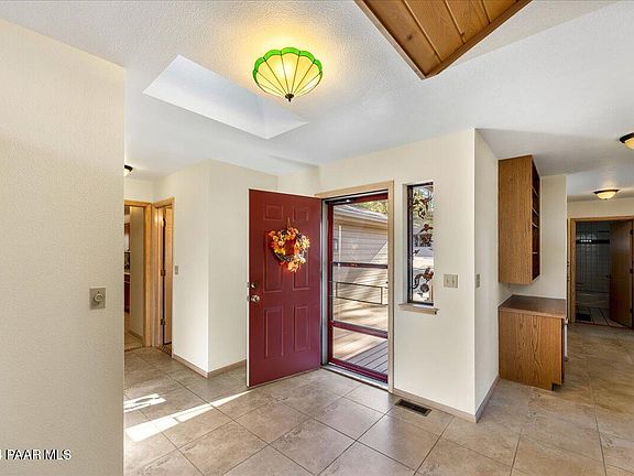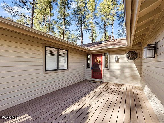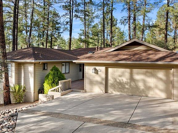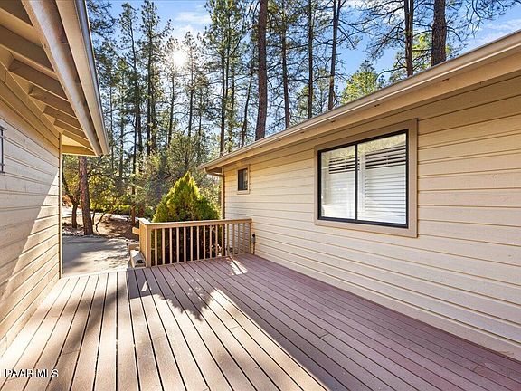 Discover this beautiful 3 bedroom 3 bath home located on a private cul-de sac  nestled under Ponderosa Pines. Enjoy the spacious heated and cooled Arizona room, perfect for hobbies, relaxation, or fitness activities. The interior features stunning wood flooring an expansive brick fireplace and two fantastic decks and patio ideal for outdoor entertaining. This home has undergone numerous improvements in recent years, enhancing its appeal.  A large workshop with private entry offers possibilities including an office  or potential guest quarters. Located just minutes from Prescott and its vibrant amenities, you'll also have access to the Hidden Valley Community Center, featuring pickleball courts, tennis, racket ball, basketball plus engaging activities, exercise programs and a pool.