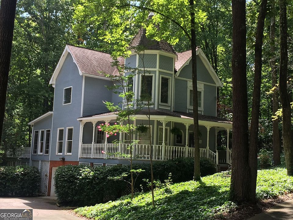 A beautiful Victorian style farmhouse situated on 2+ wooded acres offers the tranquility of serene country living just 3 miles outside of Rome. This 3 bedroom 3 1/2 bath home includes a private basement apartment that could be used as an in-law suite, a bright kitchen with stainless steel appliances, a sunroom just off the kitchen with double french doors that lead to the back deck and wrap around porch on the side and front of the house. The master bedroom features 6 antique etched and beveled glass windows that flood the room with natural light. Property boasts: Two separate, efficient HVAC systems- one for the main floor & basement apartment and one for the upstairs. 12'x60' kennel with 5' tall, heavy duty chain link fencing. 175 sq ft building that has been turned into a playhouse with power, double barn-door entry & a window on the back side. Two separate garages- one under the house and one two-story detached with a loft that offers an additional 1700 sqft that would make a great workshop or additional living space. This home is a sanctuary with high ceilings, crown molding and large windows that showcase beautiful wooded views. Perfect for anyone seeking a private escape, tons of space, storage and possibility. There is an option to purchase the additional 2 acre parcel next door for a total of 4.09 acres. (J16X095 & J16X096)